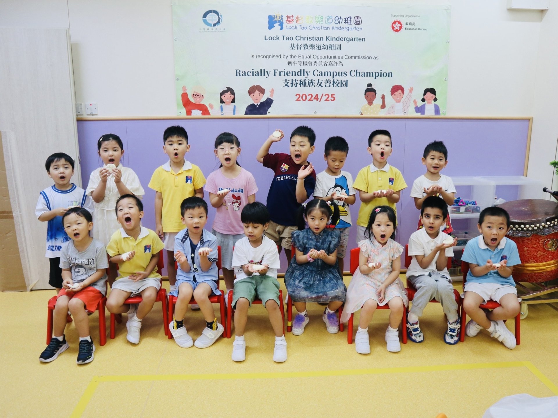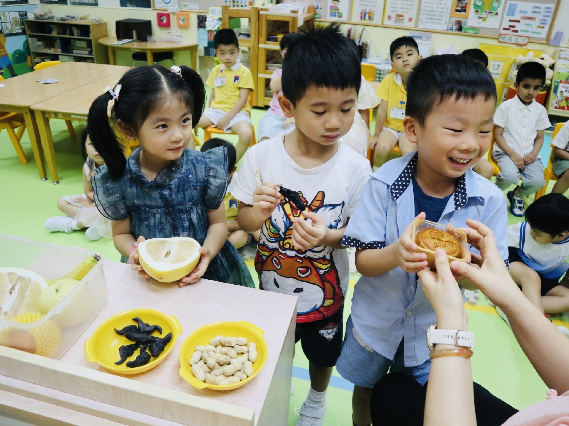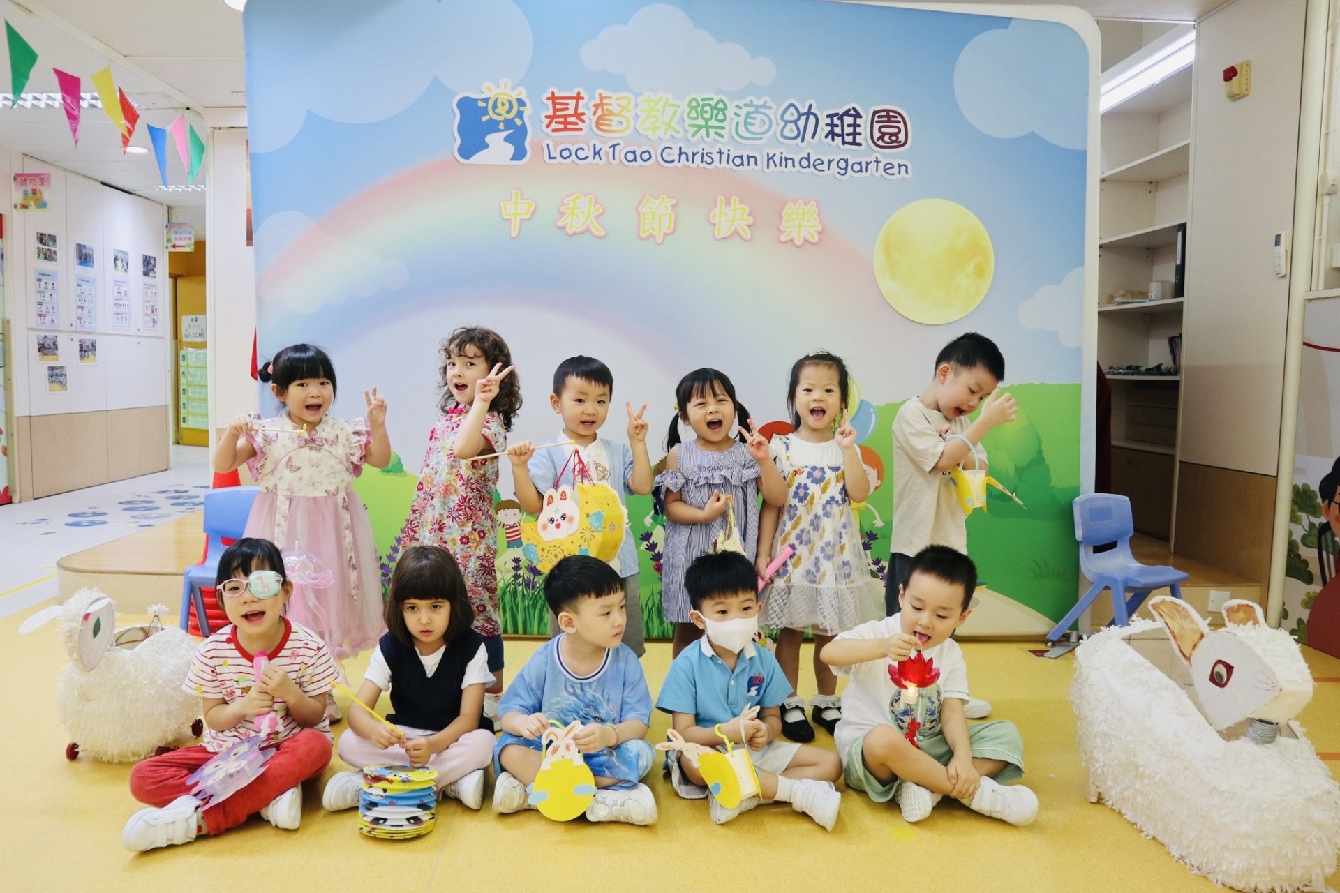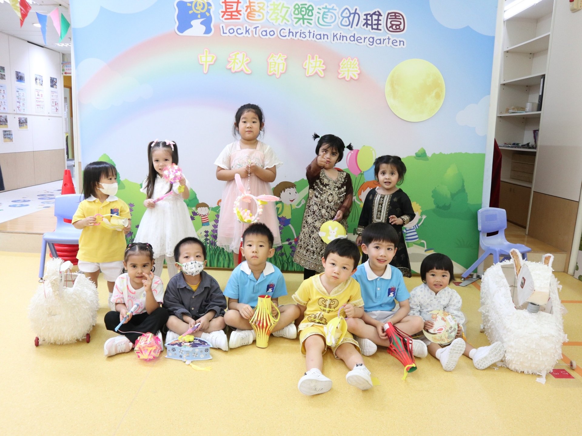 中秋佳節慶團圓,小朋友穿著華服參與中秋節慶祝會。小朋友玩花燈、吃月餅、猜燈謎,還有學習造月餅。他們都享受各種活動,十分開心及投入,共同渡過又充實又有意義的中秋節。